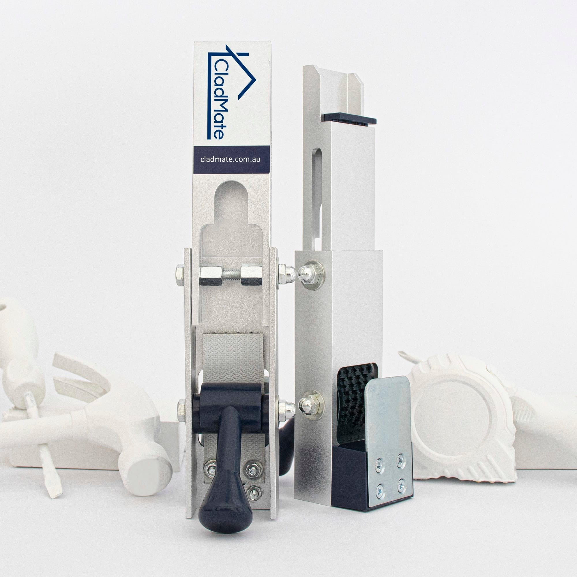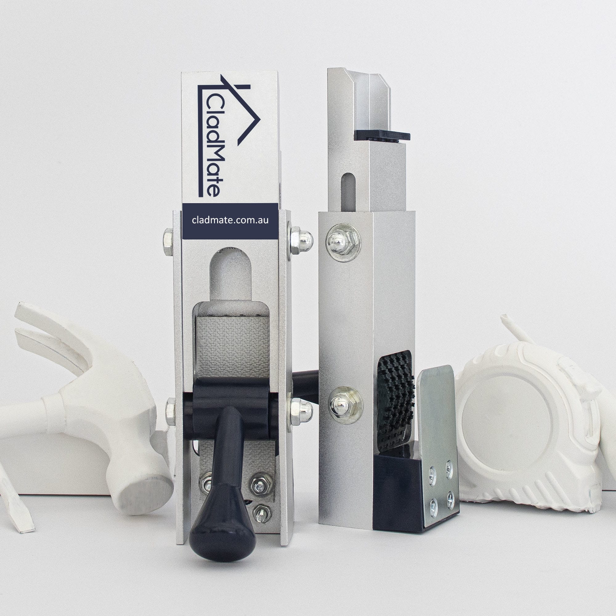 CladMates friction lock supports heavy full-length weatherboards with damage-free clamping that holds strongly and releases effortlessly.